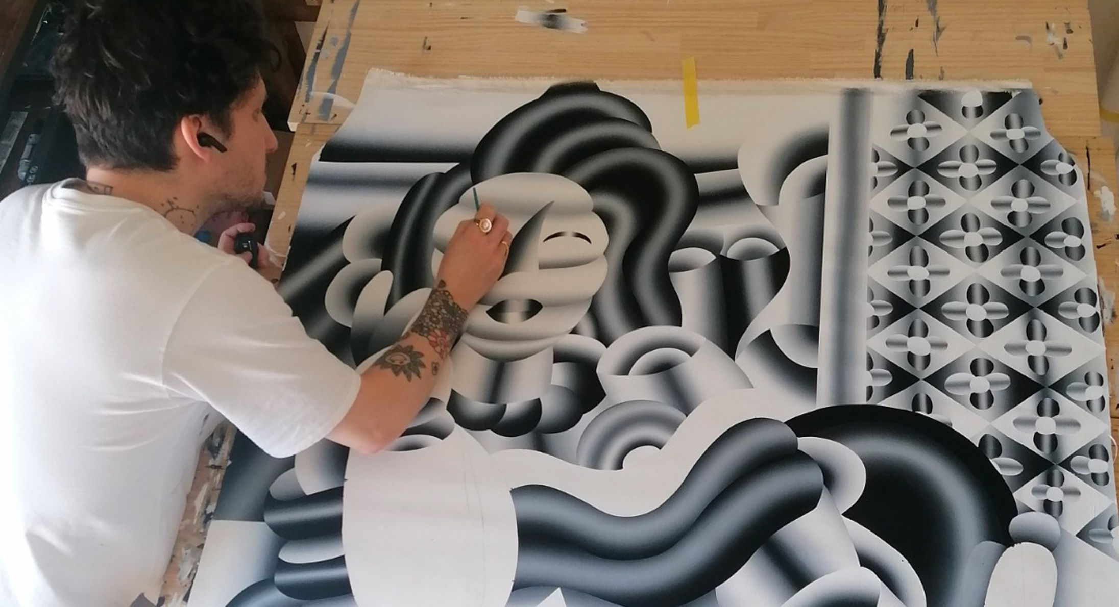 Who have been your biggest influences when developing your artistic language?This question is complex because I'm passionate about art and artists in general. I'm familiar with the biographies of artists, mainly from the 20th century. Therefore, they have all, in one way or another, influenced my work. Without going into too much detail, I can mention two who have particularly influenced my practice: Fernand Léger and Tomoo Gokita (one French and one Japanese!). Fernand Léger inspired me with the structured aspect of his forms and his "cylindrical" style, elements that are also present in my works. As for Tomoo Gokita, his strong use of contrast in his black and white paintings, as well as the way he manipulates light in his works, have been crucial aspects for me in my paintings in recent years.