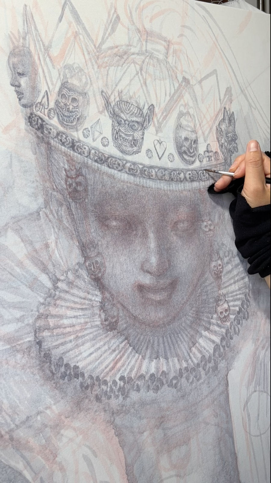 This exhibition aligns with the direction of my Masquerade series, showcasing early works created on wallpaper, as well as the previously unreleased sub-series Pietà within the Masquerade theme. I believe it will be a meaningful exhibition for those interested in my artistic world."